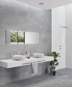Dubai Lux – a beautiful large format porcelain that mixes lead and smoke tones. It contains a burst of very fine, arborescent veins that alternate between white and amber. The Lux finish gives it a stunning lappalato finish. The series is made up of 2 colours: the original marble colour (graphite) an Grey.