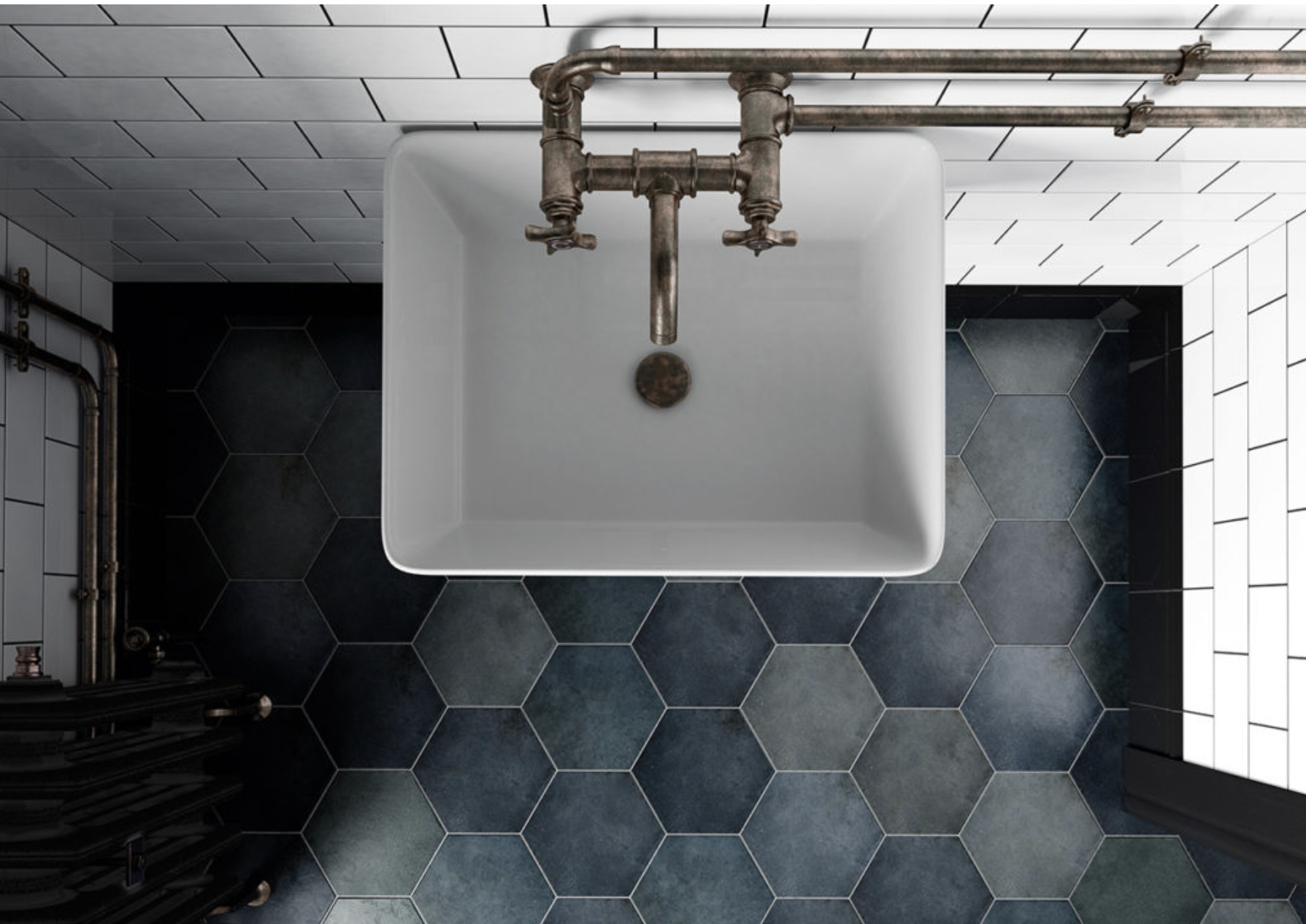 Heritage is a beautiful porcelain Hexagon range. There are 3 colours available, Jungle, Indigo and Shadow, each colour containing a variety of shading throughout.